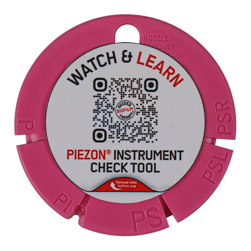 The PIEZON® Instrument Check Tool helps to check the wear of your PIEZON® Instruments. Once the tips are worn away, excessive and uncontrolled vibrations can result. You should therefore check your instruments on a regular basis so that you can always offer your patient a comfortable and painless GBT treatment. The Check Tool also helps to remove the PERIOFLOW Nozzle easily.
