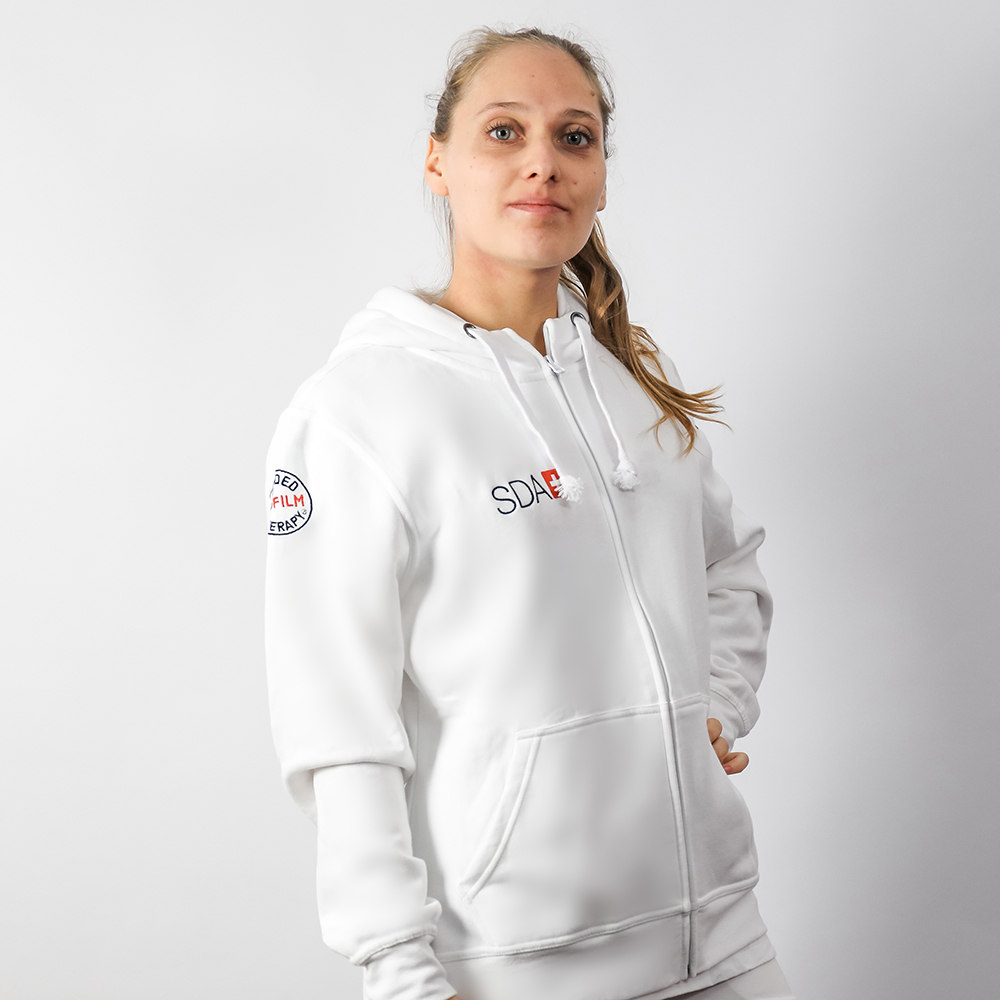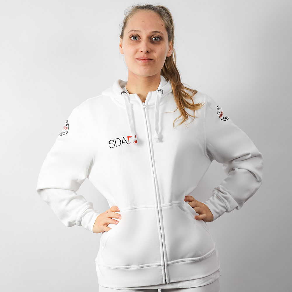Cotton sweat jacket with GBT logo embroidery and SDA embroidery on the chest.